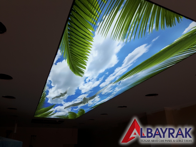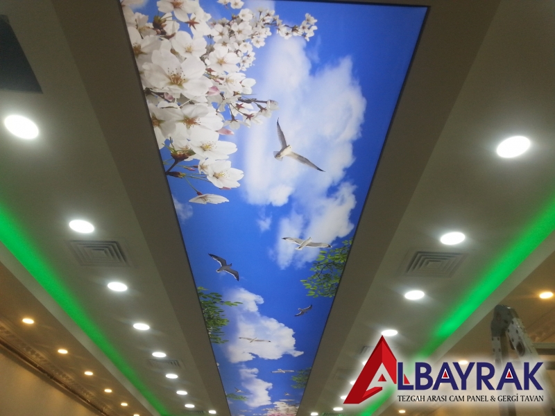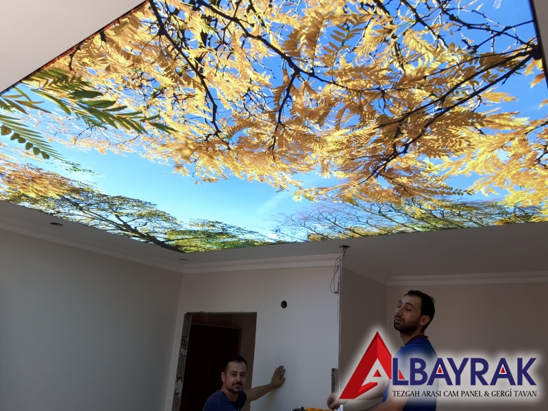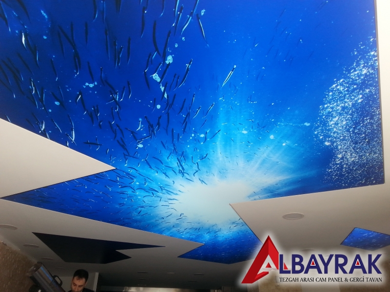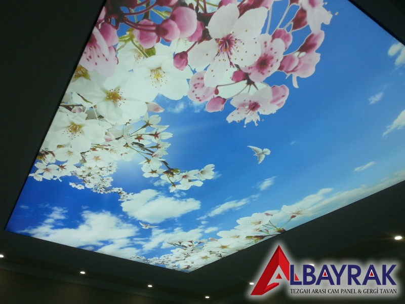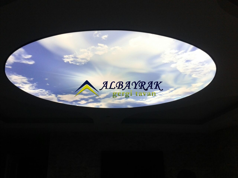 Gergi tavan malzemelerimiz üzerine led uv baskı tekniği uygalanarak yapılan islem sayesinde gergi tavan larımız güneş ışığına dayanıklı hale gelmektedir.gergi tavan üzerine yapılan led uv baskı boya özelliğinden dolayı renk solmaları yaşanmaz ,gergi tavan renkleri canlı ve şık bir görünüm elde edilirAlbayrak gergi tavan uv baskı gergi tavan modelleri en fazla kullanılan modellerdir.resim arşivimizde bulunan uv baskılı gergi tavan modellerinden herhangi birini secebilirsiniz.gergi tavan fiyatları ve modelleri için arayınz.Dijital baskı gergi tavan sistemi, ışıklı doku gergi tavan kumaşına Dijital baskı tekniği ile UV baskı tekniği ile baskı yapılarak uygulanmaktadır. UV baskı tekniği hem uzun zaman solmayan bir baskı sunar hemde kesinlikle boya çıkmaz. Uv baskı ile yapılan dijital baskı gergi tavan sistemi uzun yıllar solmadan tavanınızda canlılığını korur ve içinde herhangi bir bakteri bulundurmaz. Son zamanlarda kapalı mekanlarda ışık geçirgen doku üzerine dijital baskı gökyüzü resimleri basılarak ferah mekanlar elde edilebiliyor. Diğer taraftan, verilecek herhangi bir görselinde baskı mümkün. Baskılı olarak kullanılan gergi tavan sistemleri mekanınıza ekstra görsellik kazandırmaktadır
